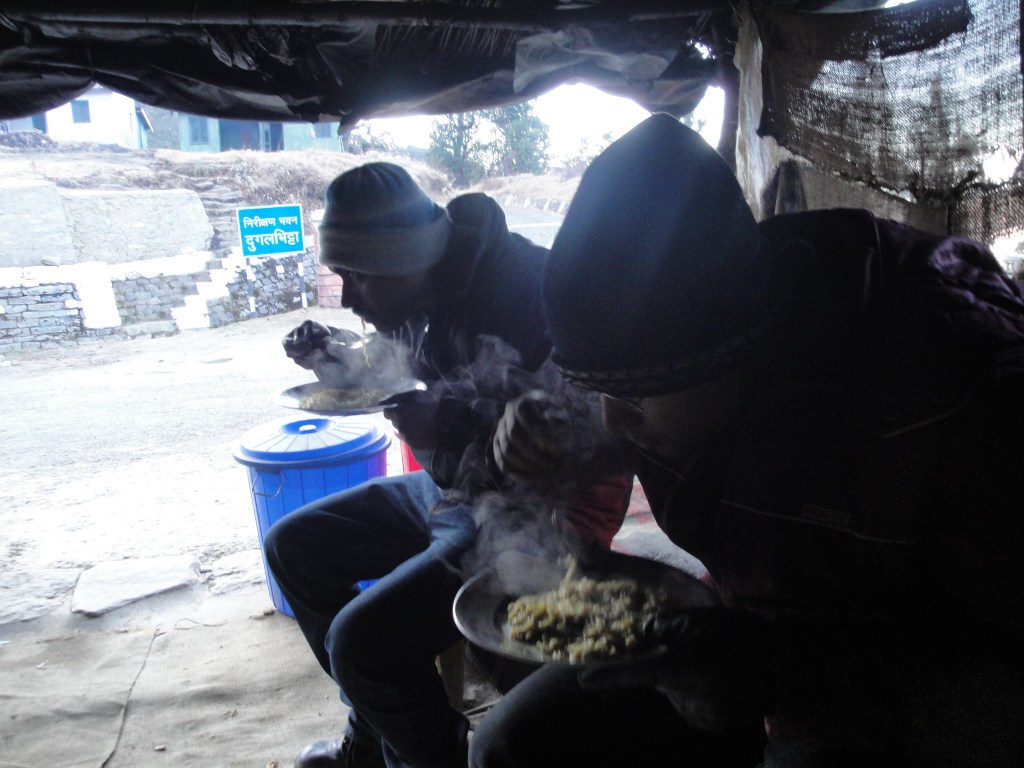 On reaching Dugalbitta we came to know the only private place to stay was closed for renovation. So we requested the local Dhaba owner to help us. He managed to put us up in a state government cottage and told us he will help us with the trek to Chandrashila. After a simple meal of hot dal, vegetables and roti we slid into the cottage to retire for the night.