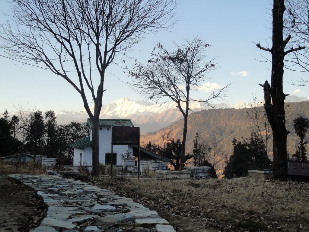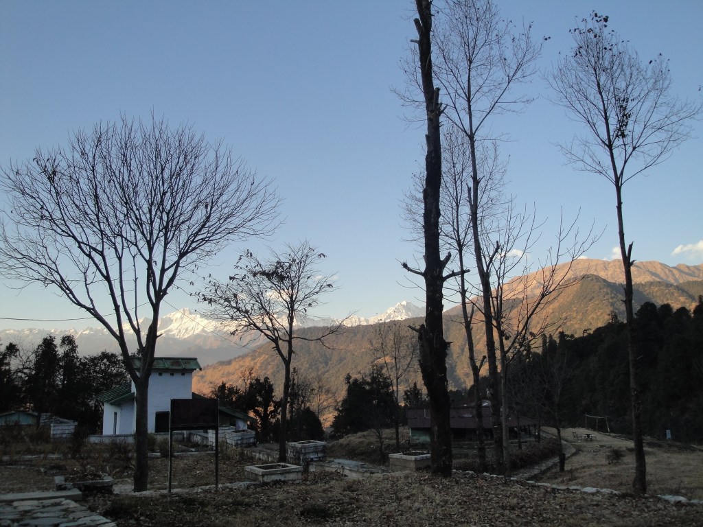Sunday morning when we stepped out of the cottage at -5 deg C temperature we were just astounded by the view that greeted us. The night before when we had reached Dugalbitta we had no clue how close we were to the Himalayas. The sight of snow-capped mountains behind conifers was breathtaking.