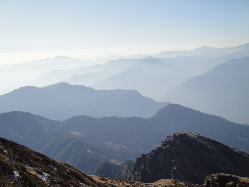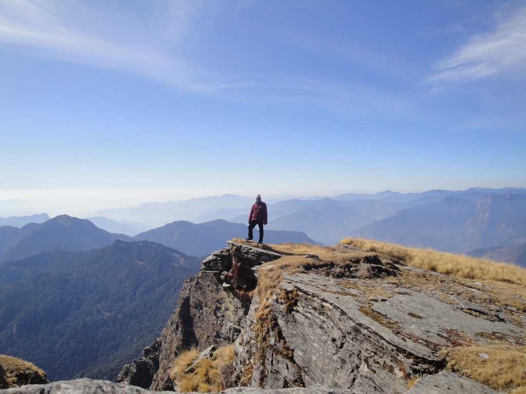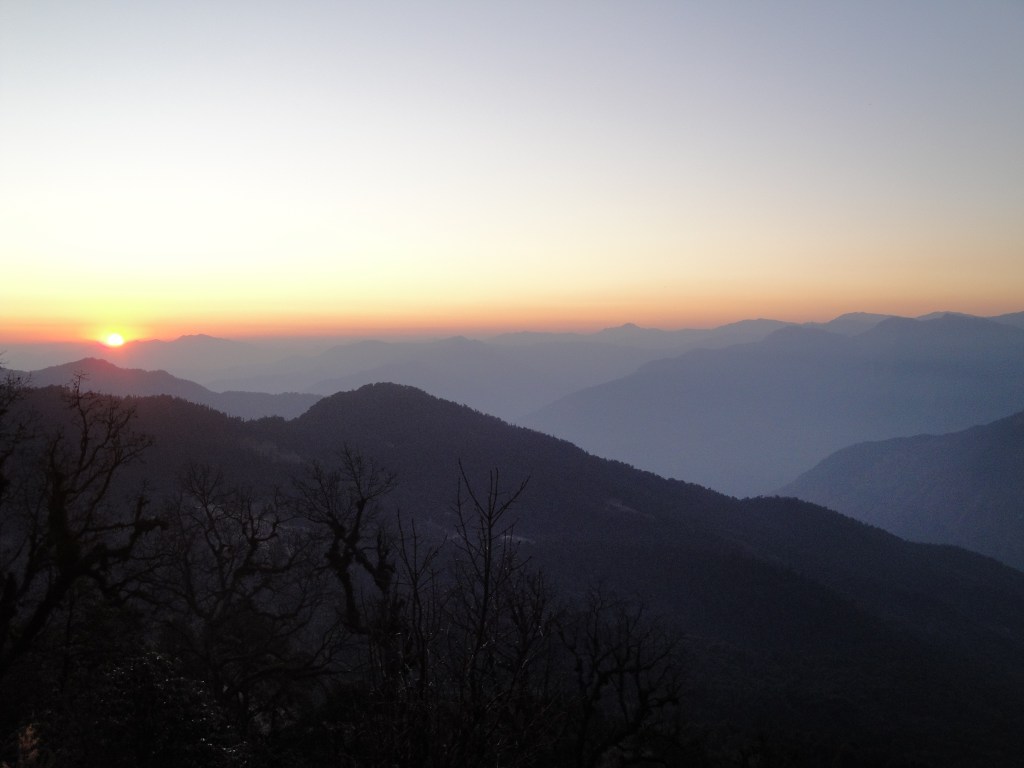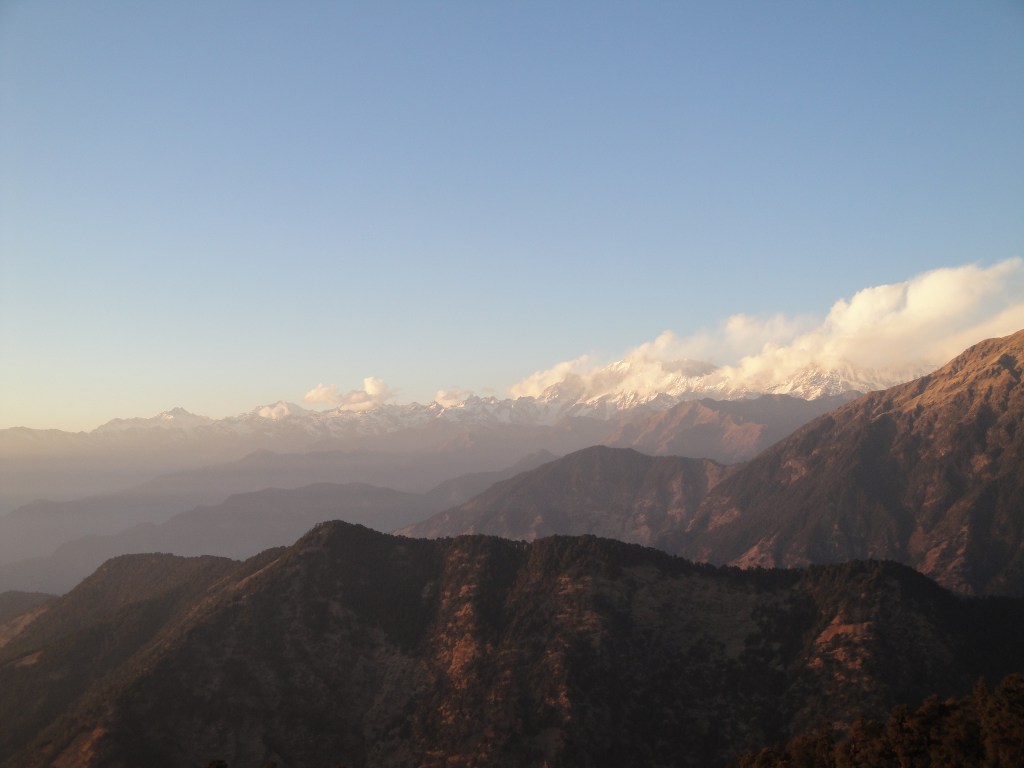 We glimpsed the peaks rising along with us as we climbed but when we reached the top the view was ethereal. Almost impossible to describe in words. The snow-capped mountains to Nanda Devi peak to the rolling hills in hues of blue, it was a humbling experience. We sat there in amazement for hours and after having our lunch of parathas and pickle slept of the peak bathing in the afternoon sunlight.