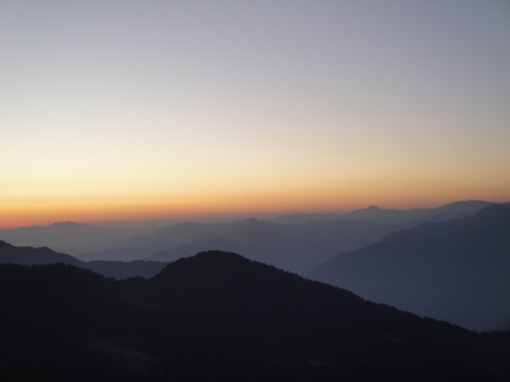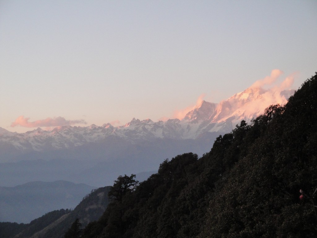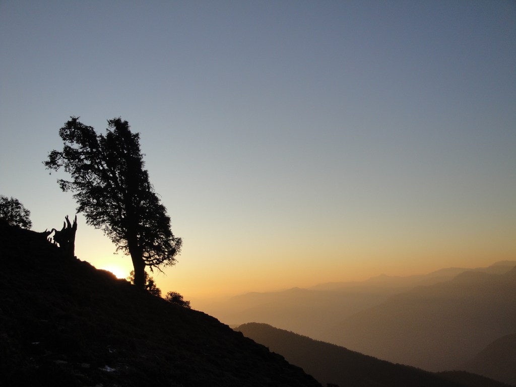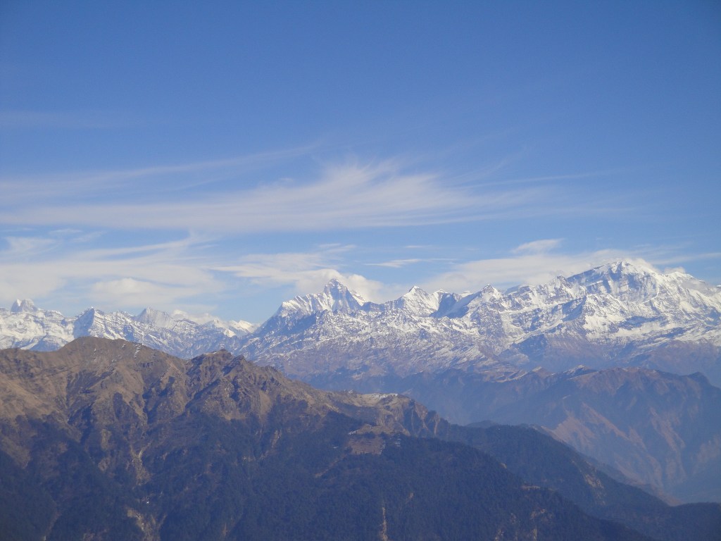 We glimpsed the peaks rising along with us as we climbed but when we reached the top the view was ethereal. Almost impossible to describe in words. The snow-capped mountains to Nanda Devi peak to the rolling hills in hues of blue, it was a humbling experience. We sat there in amazement for hours and after having our lunch of parathas and pickle slept of the peak bathing in the afternoon sunlight.