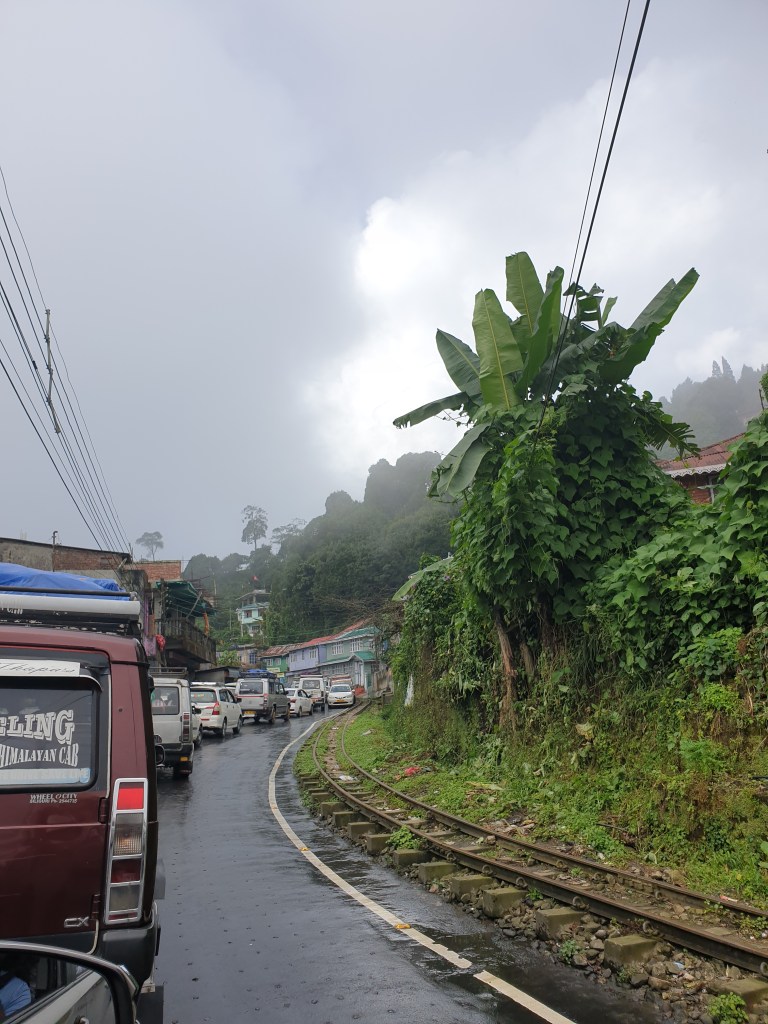 As we waited along the curve, the row of shops and hotels to our left, the gleaming toy train track to the right and the hill beyond, we heard a murmur from the cars ahead of us. Is it the train? we thought. And within a second a piercing whistle and whooshing of the steam engine confirmed the same. I joined, almost everyone in the cars, hanging out of the windows with the mobile phone to film the spectacle. And it did not disappoint. The ancient engine with the two bogies zipped past us as we the audience made contact with the passengers, who like actors in a theatre completed the scene. There was joy all around as we started to enter the town once the train passed us, there was a sense of accomplishment, having seen the theatre of the toy train up close.